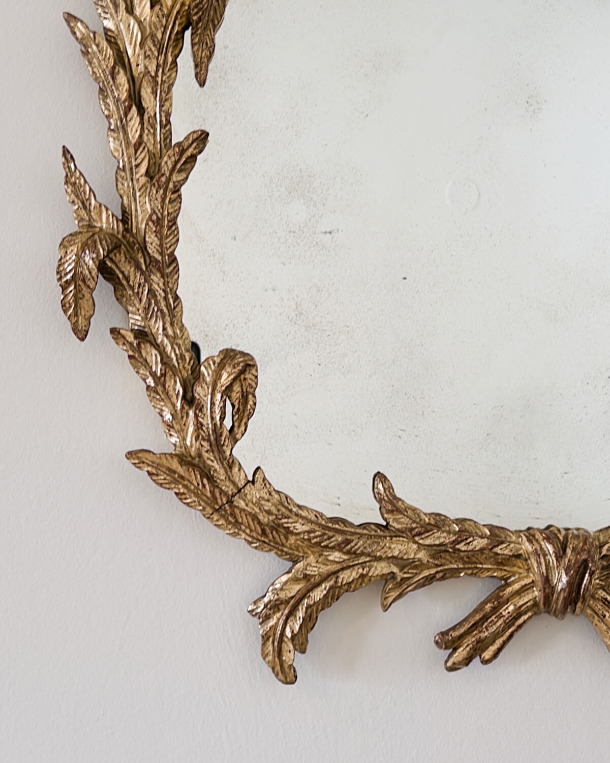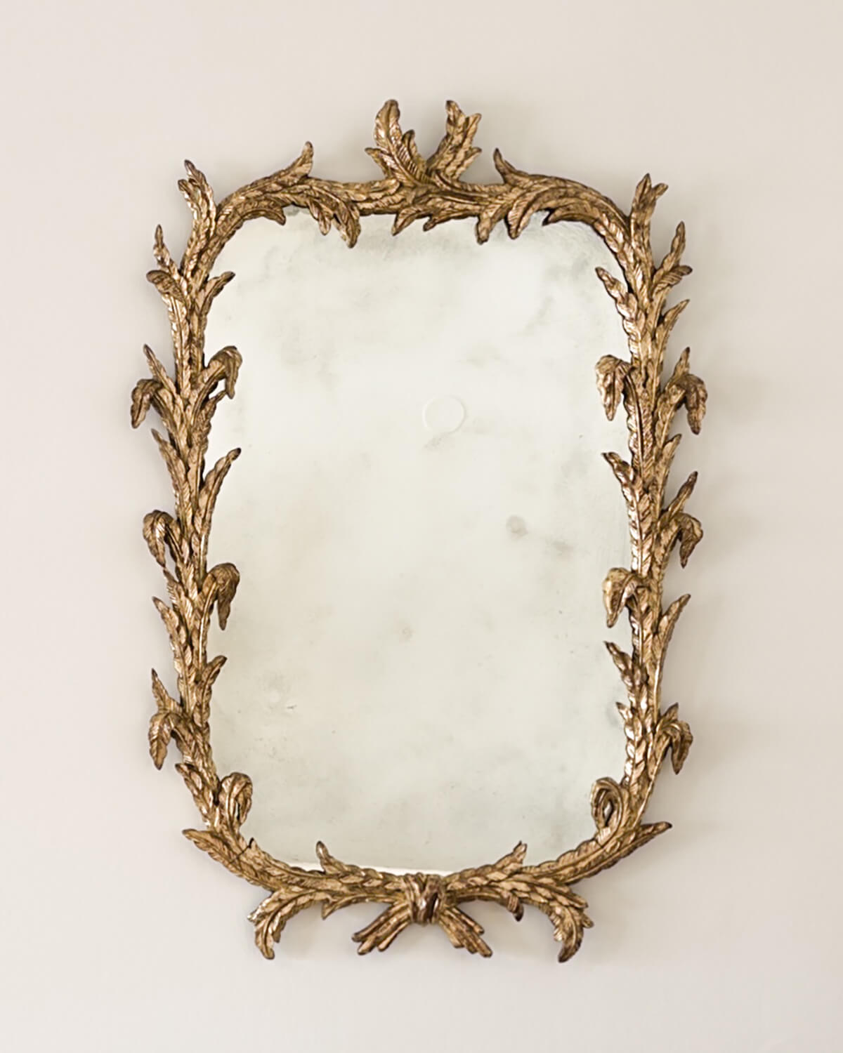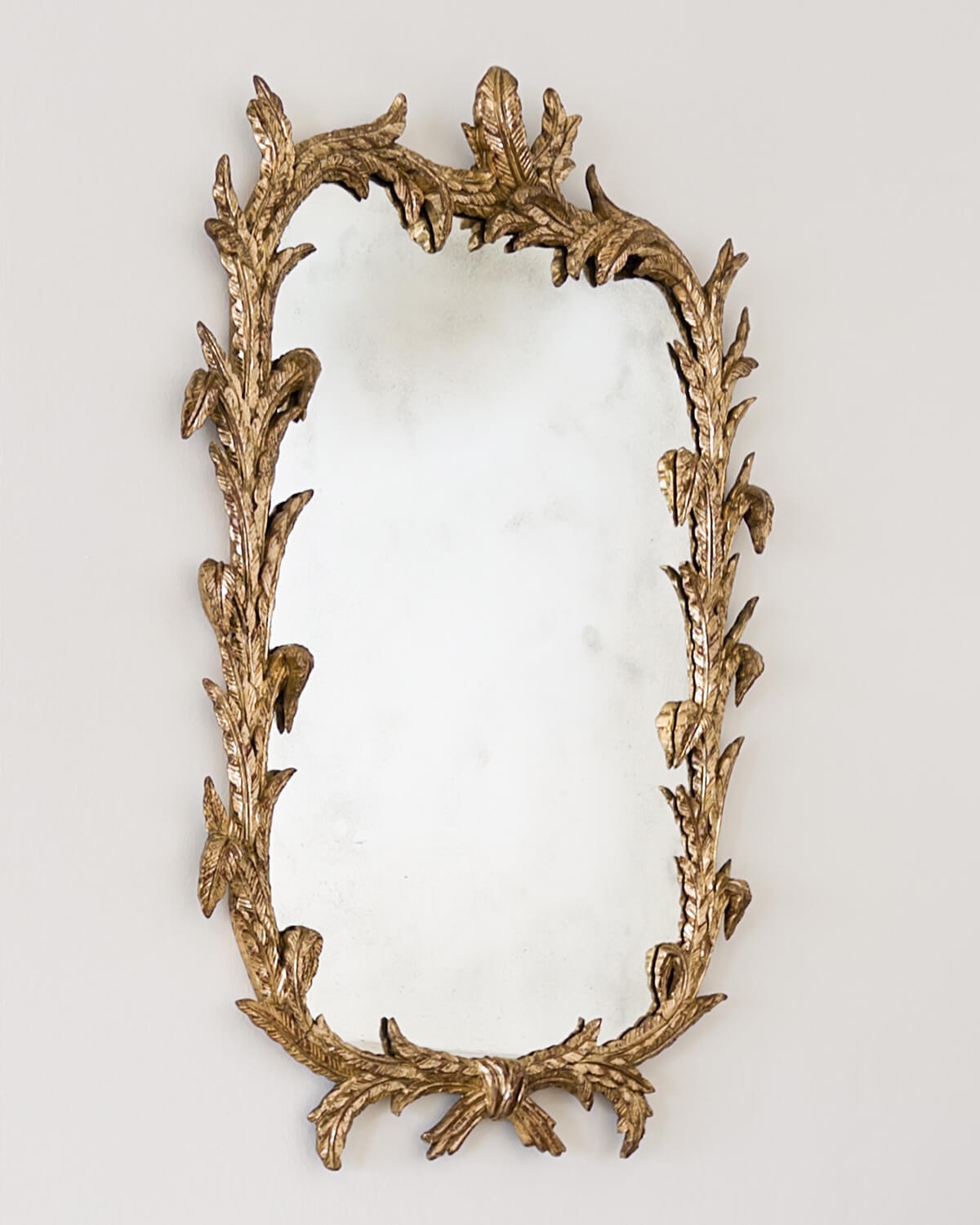 Espejo de madera plateada ricamente tallado y luna original. Francia, década de 1930. Altura: 110 cm, anchura: 75 cm.